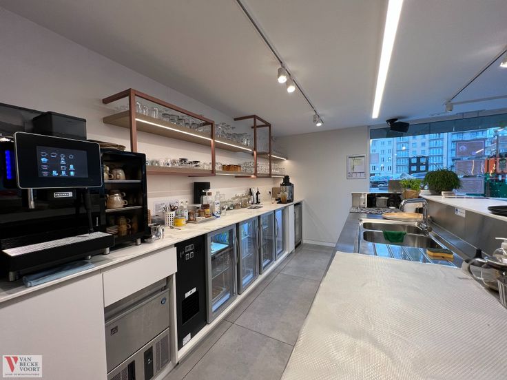 Trendy ingerichte horecazaak - terraszone - professioneel ingerichte bar en gelagzaal - warme keuken met comfortabele luxe installatie en afzonderlijke afwasruimte - toilet mindervaliden - leveranciersingang.