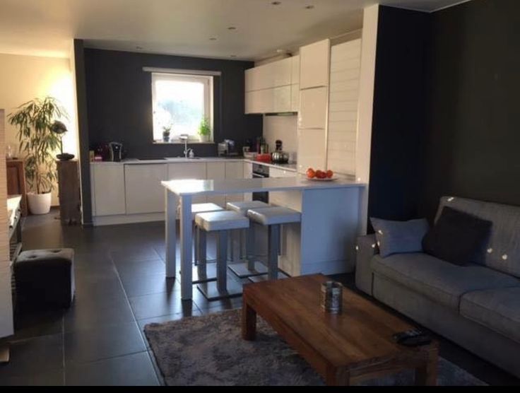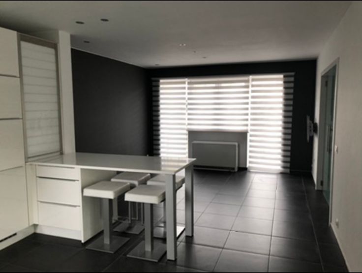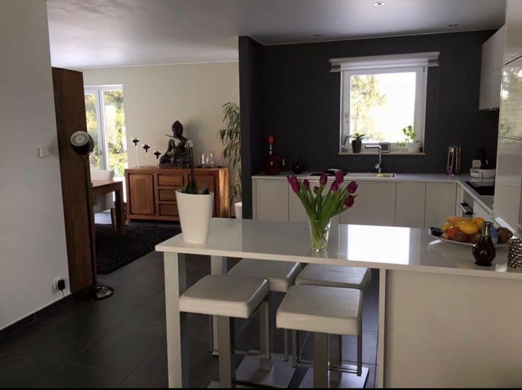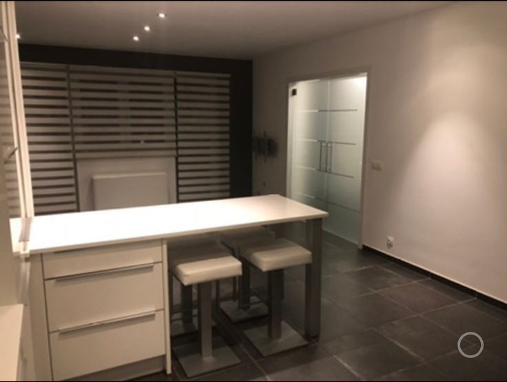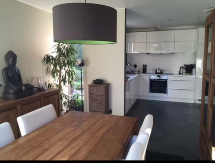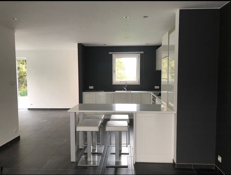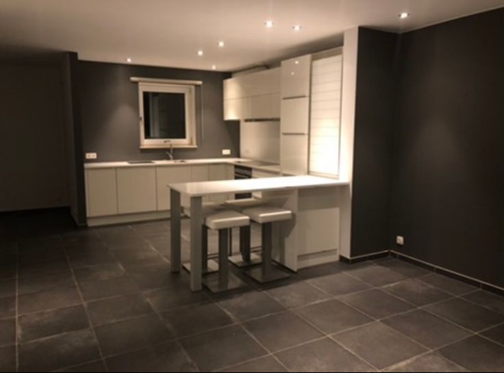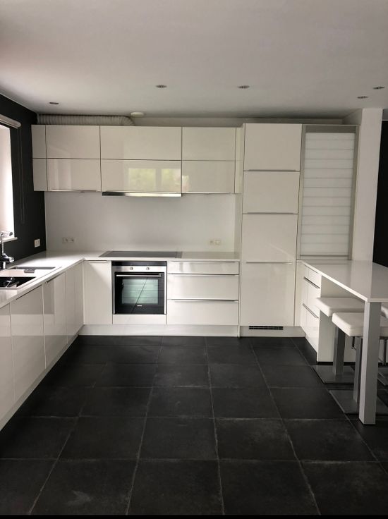 Salon, salle à manger donnant sur le jardin avec 2 baies vitrées. Grande Cuisine blanche EGO laquée super équipée (nouveau lave vaisselle) avec plan de travail en quartz blanc avec une table intégrée et 4 tabourets. Carrelage hyper facile d'entretien !