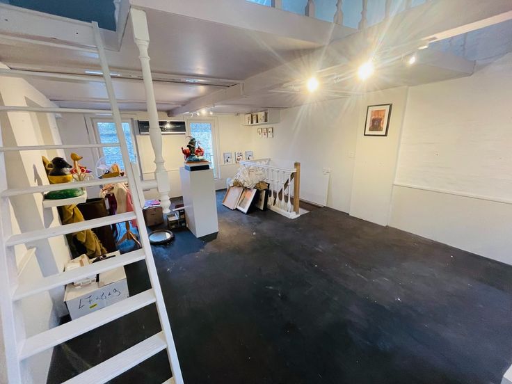 omvat: op het gelijkvloers de eigenlijke handelsruimte, stadpatio, toilet, kitchinette/bureau. Op de 1é Verdieping een ontzettend sfeervolle ruimte van 35m2 + een mezzanine van 10m² .