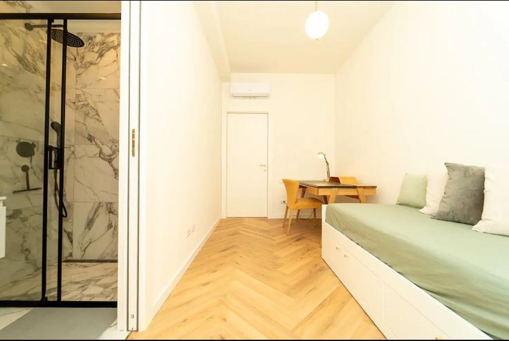 This spacious and bright apartment offers two elegantly furnished bedrooms, each with a comfortable double bed to ensure a restful sleep after a day of exploration. The two marble bathrooms, equipped with shower and bathtub, offer maximum comfort and relaxation. The modern and fully equipped kitchen will allow you to prepare delicious meals to enjoy in the bright living room, tastefully furnished and equipped with a flat-screen TV.