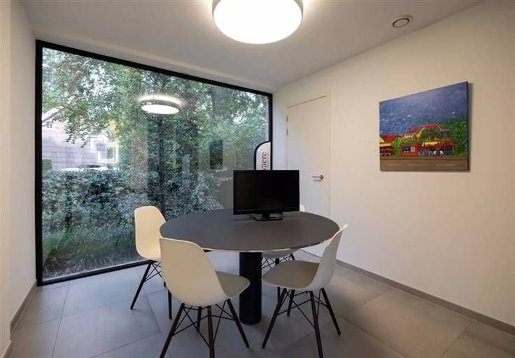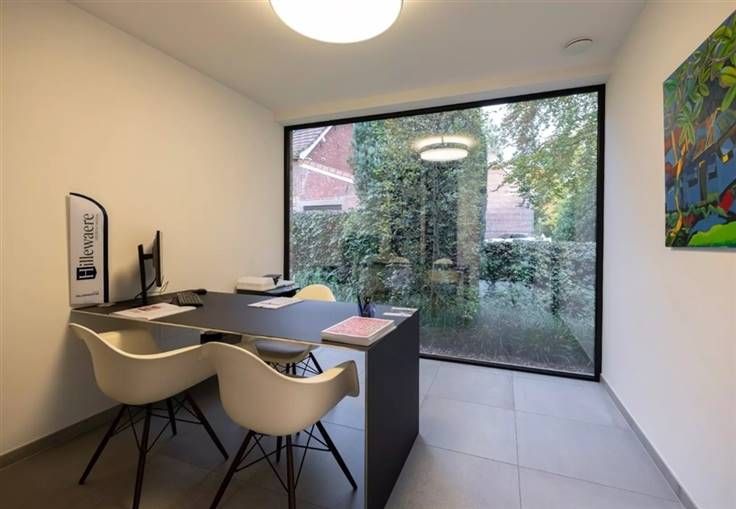 Dit moderne kantoorgebouw is volledig instapklaar en voorzien van alle comfort, achteraan het gebouw is er een ruime privatieve parking voorzien.