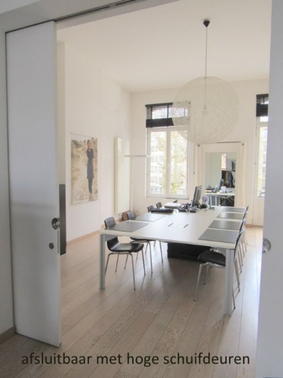1 ste verd prachtige grote ruimte van ongeveer 60 m² afsluitbaar met grote schuifdeuren ,3 burelen ,sanitair en moderne keukentje