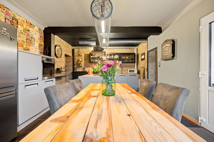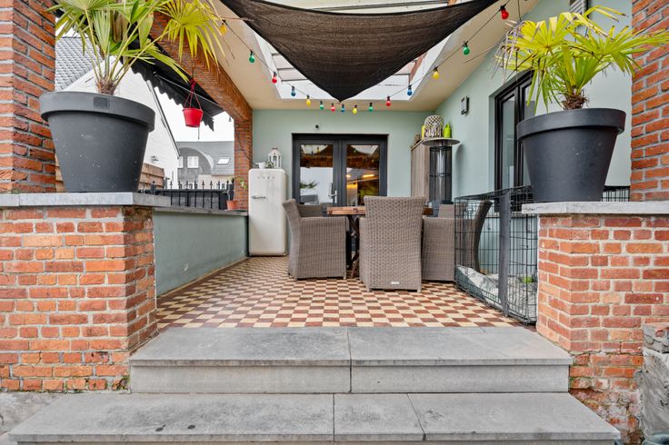 Aanpalend de keuken is er een overdekt terras, deze een toegang geeft naar de gezellige tuin alsook naar de ruime werkplaats, dit ideaal is als mancave of hobbyruimte.