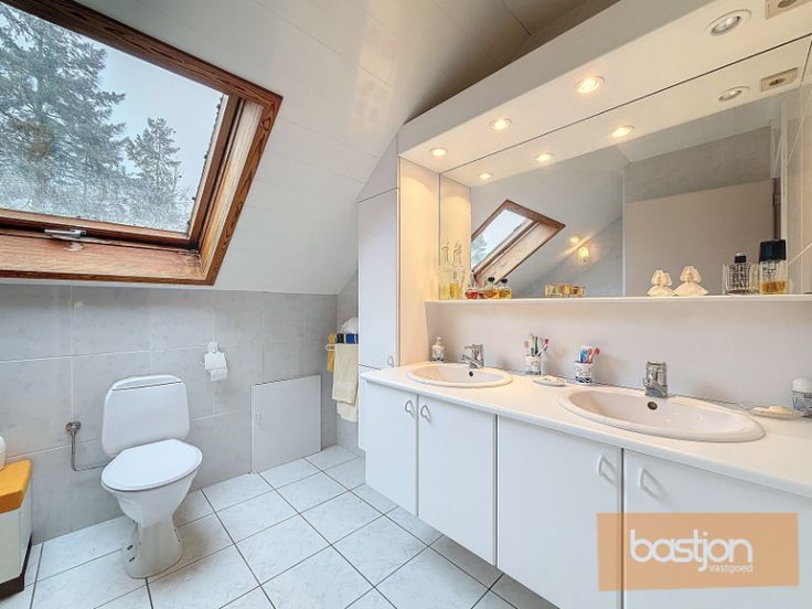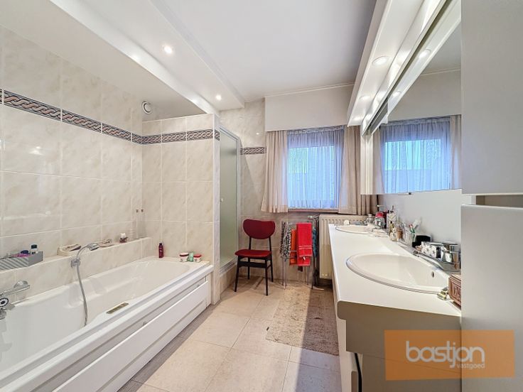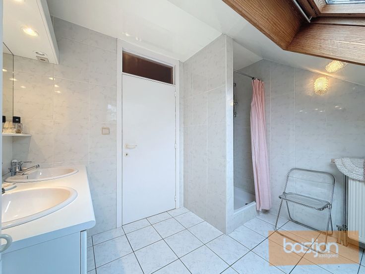De eerste verdieping herbergt twee ruime kamers en een badkamer met douche en dubbele lavabo, wat zorgt voor extra comfort en privacy.