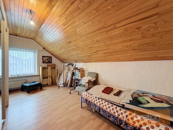 Vanuit de inkomhal komt u ook terecht in het slaapgedeelte met twee comfortabele slaapkamers en een badkamer met ligbad en dubbele lavabo. Op het gelijkvloers vindt u daarnaast een bureau, ideaal voor werk of als extra opbergruimte.