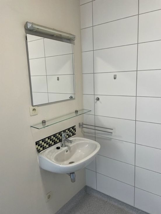 Dit appartement heeft volgende indeling: woonkamer met geïnstalleerde keuken en een badkamer voorzien lavabomeubel, toilet en douche.