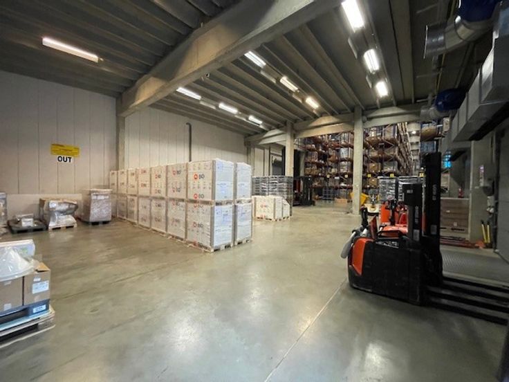 ENTREPOT GRANDE CAPACITE 7400 EURO PALETTES EN ALLEE ETROITE AVEC TRI DIRECTIONNELLES? PICKING SUR LA MACHINE POSSIBLE, EQUIPEE DE RAYONNAGES, CHAUFFAGE AU GAZ et POSSIBLE DE MAINTENIR LA TEMPERATURE 15C° A 25 C°. 2 QUAIS MOBILIES AVEC RIDEAUX D'AIR. A PROXIMITE DE GRANDS AXES ROUTIERS E411/RN 25, A 150 mètre de la Gare de Gastuche et 150 Mètres d'un arrêt de la TEC.
