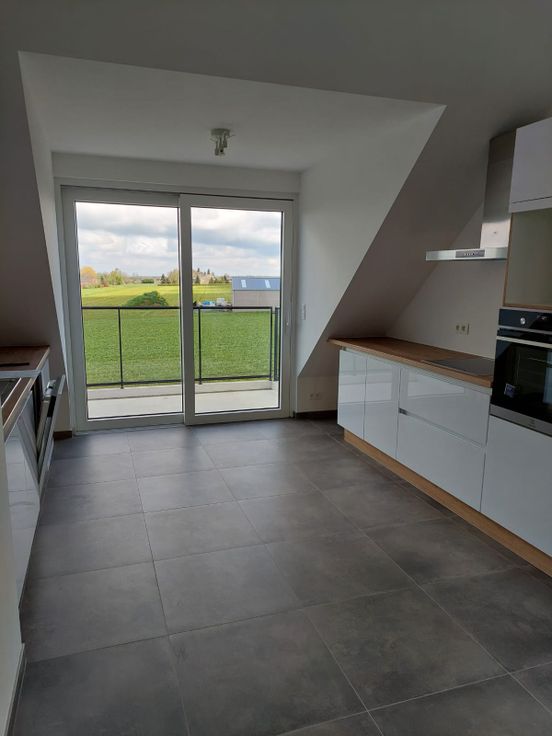 SITUATION EXCEPTIONNELLE dans un immeuble neuf. Appartement 2 chambres très lumineux situé à 5 minutes de Nandrin. Composé comme suit: 1 hall d'entrée, 2 chambres, 1 cuisine ouverte et hyper équipée, très beau séjour, 1 salle de bain, 1 buanderie et 1 WC indépendant + 1 terrasse à l'arrière. Chauffage sol - pompe à chaleur, très peu énergivore.