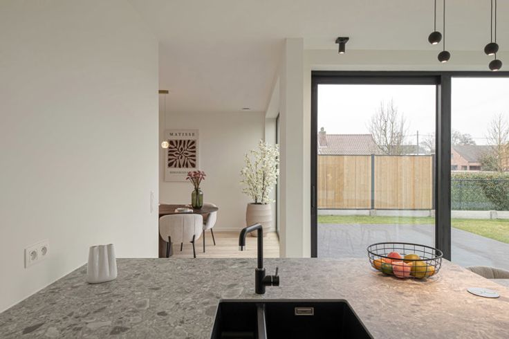 Alle voorzieningen (winkels, school,...) bevinden zich vlakbij. Dankzij zijn doordachte architectuur en ruimtes die naadloos in elkaar over gaan beschikt deze villa over luchtige ruimtes met veel lichtinval. Via de grote raampartijen achteraan krijg je direct toegang tot het terras en de tuin.