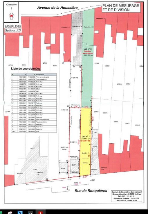 Vente de deux terrains entièrement clôturées, en zone d'habitat, à 900m de la gare, et proche de toutes les commodités et du centre-ville : 1/ Terrain présentant une façade de 5,30 m et une profondeur de 33,91 m, d'une superficie totale d'1 are 85 centiare ; Prix souhaité : 60.000€ ; Cadastrée section C 208 N5 P0000 ; Occupation : garage loué (124€/mois) ; 2/ Terrain présentant une façade de 5,52 m et une profondeur de 33,09 m, d'une superficie totale d'1 are 81 centiare ; Prix souhaité : 60.000€ ; Cadastrées section C 0208 W5 P0000 ; Occupation : libre d'occupation ** pour tous renseignements complémentaires, n'hésitez pas à contacter l'Etude : 067/33.11.17 ou consulter notre site : www.bricout.be (annonces immobilières)