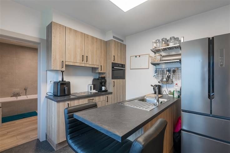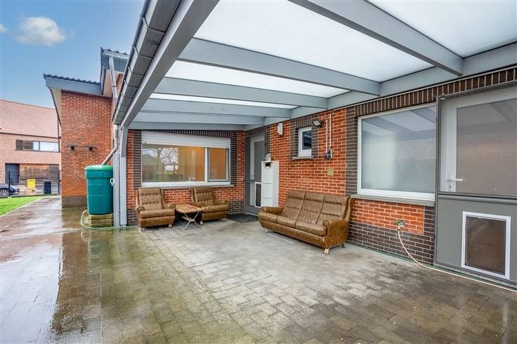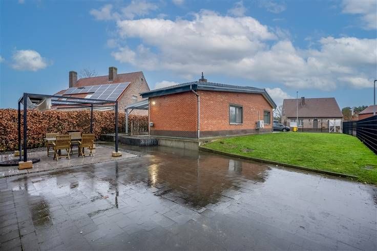 De woning biedt een praktische indeling met een inkomhal, twee slaapkamers, een gezellige living, een recent vernieuwde keuken en badkamer, een achterinkom en wasplaats, een apart toilet, en een vrijstaande car-port met grote berging.