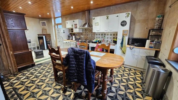 Une maison située dans le village de Templeuve. Un petit sas se trouve devant la porte d'entrée. En entrant, vous accédez à un living avec un feu pellet. Dans la continuité de celui-ci, se trouve la cuisine (avec hotte, taques et four). Le bien comprend également une buanderie et une remise. A l'étage, se trouvent deux chambres, une pièce qui peut être aménagée en bureau et une salle de bain (avec baignoire, évier et WC). Dans les combles de la maison, vous avez un grenier aménageable. A l'extérieur, un jardin et un garage sont présents. La superficie de la maison est de 5 ares et 22 centiares.