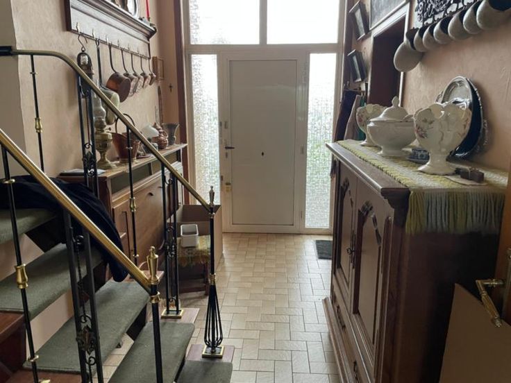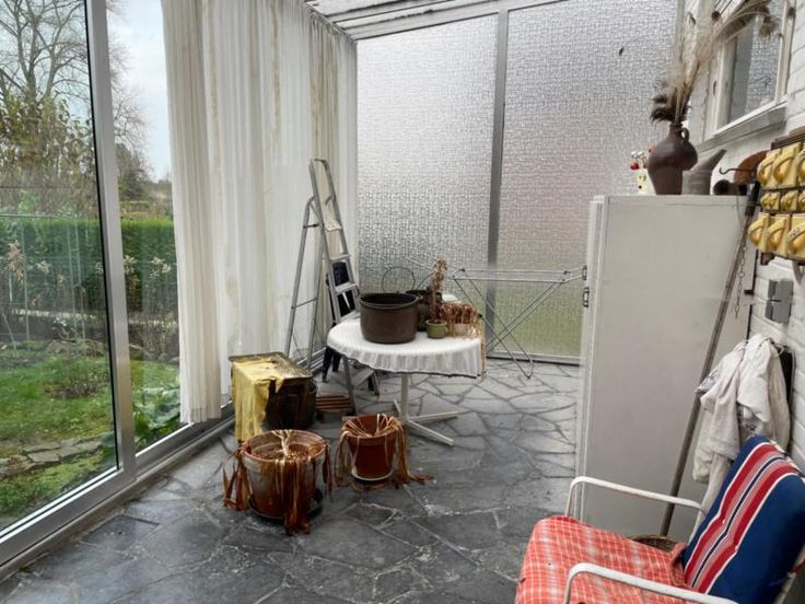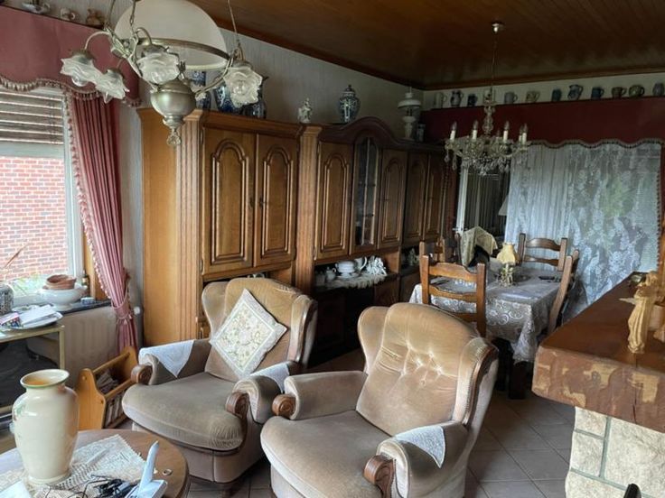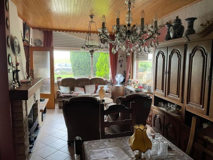 Sur un terrain de 7 ares 50 centiares (selon extrait récent de matrice), vous trouverez cette maison 4 façades à rénover avec garage, jardin avant et arrière, chalet, remise de jardin et volière. Le hall d’entrée (avec une grande hauteur sous plafond) vous donne accès d’un côté à la grande pièce de vie, au bureau arrière ainsi qu'à la cuisine (arrivée d’eau pour machine à laver) et de l’autre côté, à un niveau surélevé à 2 chambres et la salle-de-bain (WC, lavabo et baignoire). Véranda arrière, sous-sol avec garage et chaufferie Aspects techniques : feu au bois, chauffage central et production d’eau chaude au mazout, cuve aérienne dans le garage, fosse septique, puit d’eau avec pompe dans la véranda, toiture en ardoise, châssis bois, vitrag extérieur, volets électriques, compteur électricité simple horaire. Pour toute visite veuillez contacter l’étude de Maître Valérie De Racker au 068/270.900