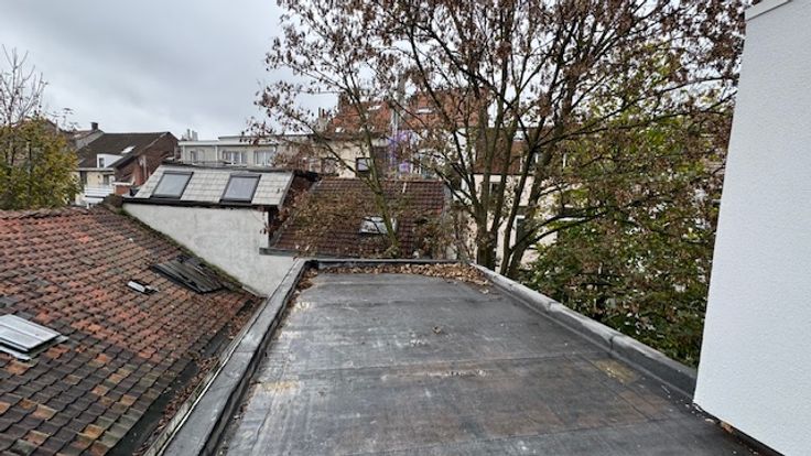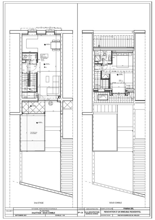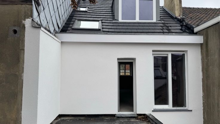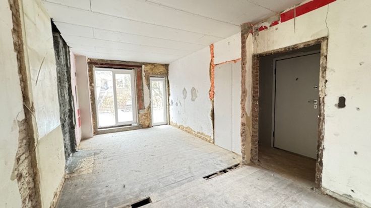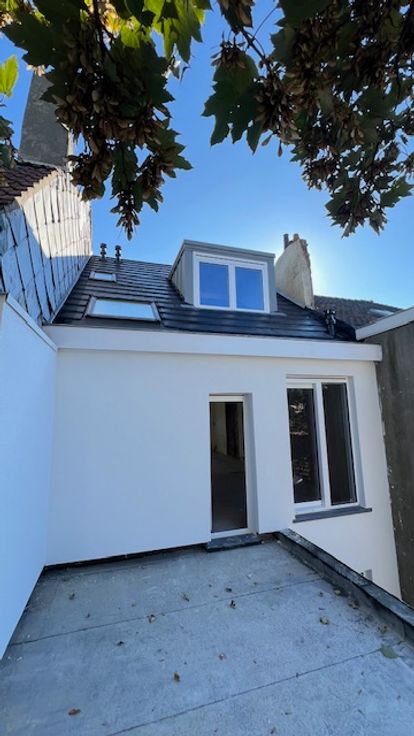 Idéalement situé à proximité du quartier européen et des transports, dans un bâtiment entièrement rénové, (toiture neuf, isolation acoustique et thermique), vente CASCO d'un duplex penthouse de 80m2 qui se compose d'une entrée avec vestiaire et WC, cage d'escalier, vaste et lumineux séjour avec accès à une terrasse orientée sud-ouest de 7m2 affilée à une terrasse végétale de 16m2. A l'étage, grande chambre parentale avec SDD + espace bureau. PEB "C" après travaux, local vélos, cave.