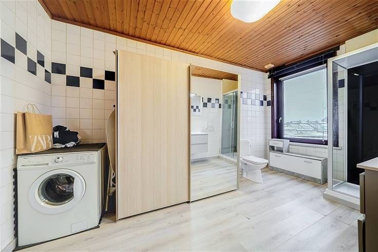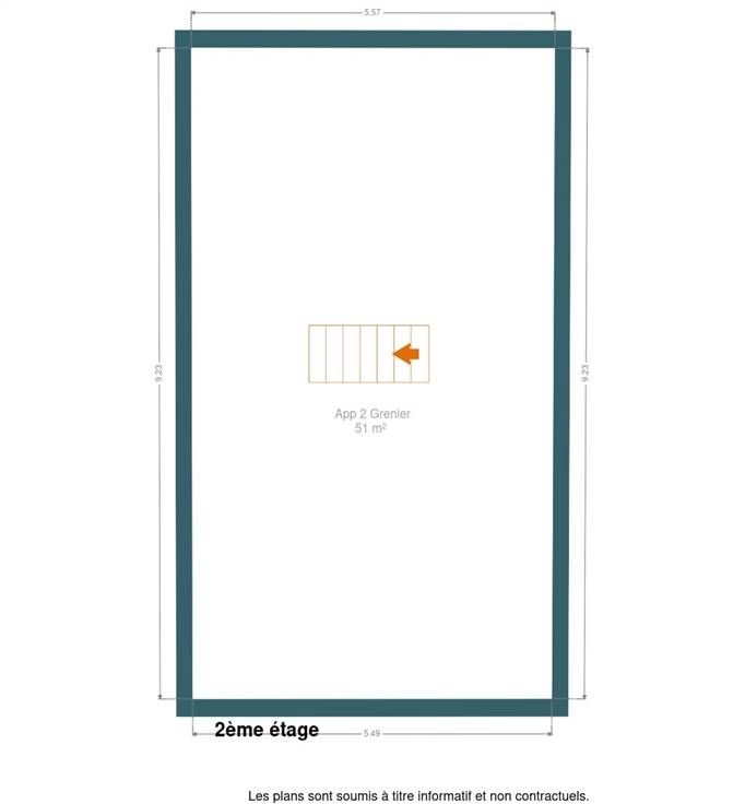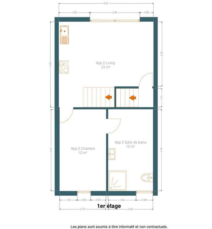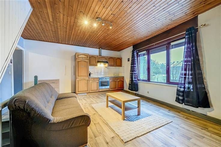 Au 1er étage, le deuxième appartement comprenant : beau living incluant la cuisine (très lumineux), 1 chambre et une salle de bains. Cet appartement profite d'un grand grenier restant aménageable.