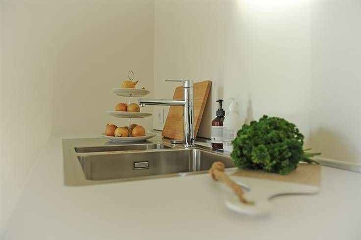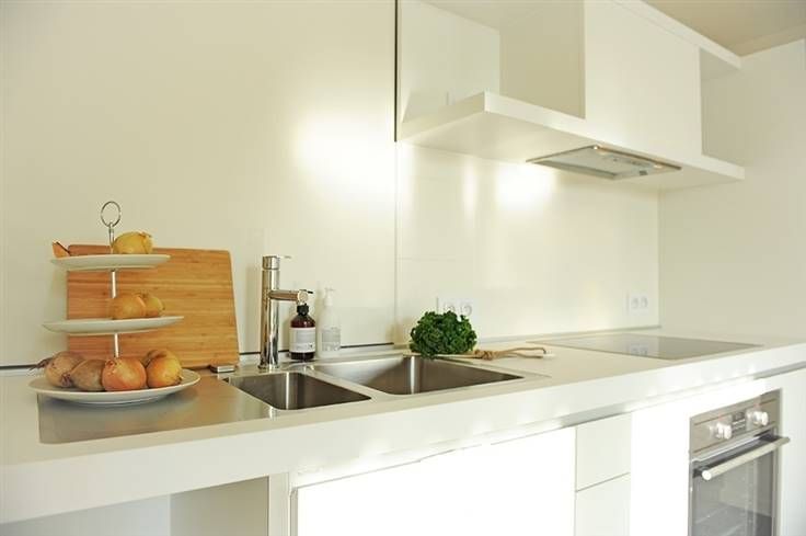 De open keuken is praktisch ingedeeld.