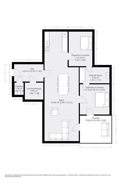 - Extérieur : terrasse de 8m² exposée Sud-Est.