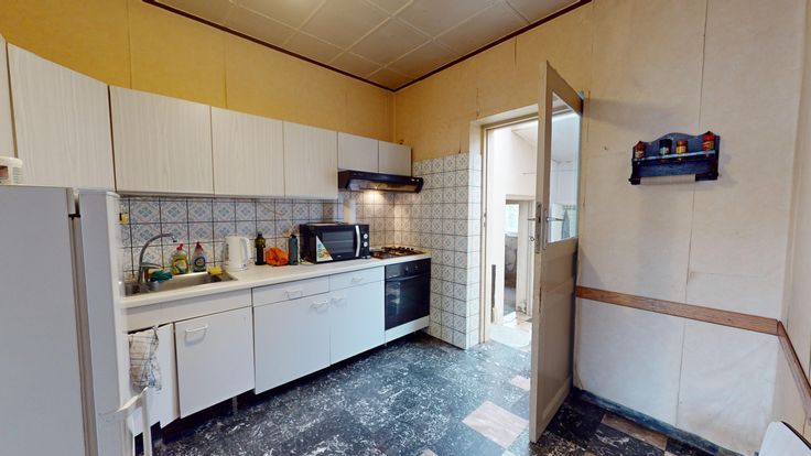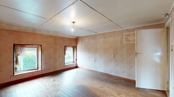 Faire offre à partir de 170.000 € - Dans une rue calme du village de Velaine sur Sambre, à 5 minutes des commerces et de la sortie 14 de l'autoroute E42, spacieuse fermette à rénover, sise sur un magnifique terrain plat de 12 ares orienté N-Ouest arrière et comprenant, au rez-de-chaussée : grand séjour avec cheminée, cuisine meublée, bureau, patio, salle de douches avec wc, buanderie, atelier, grand garage et terrasse couverte. Au 1er étage : hall de distribution, 3 chambres, espace dressing, vaste grenier aménageable. Combles : 2 greniers de rangement. En sous-sol : une cave sous voussettes. Extérieurs : jardin et abri/atelier.