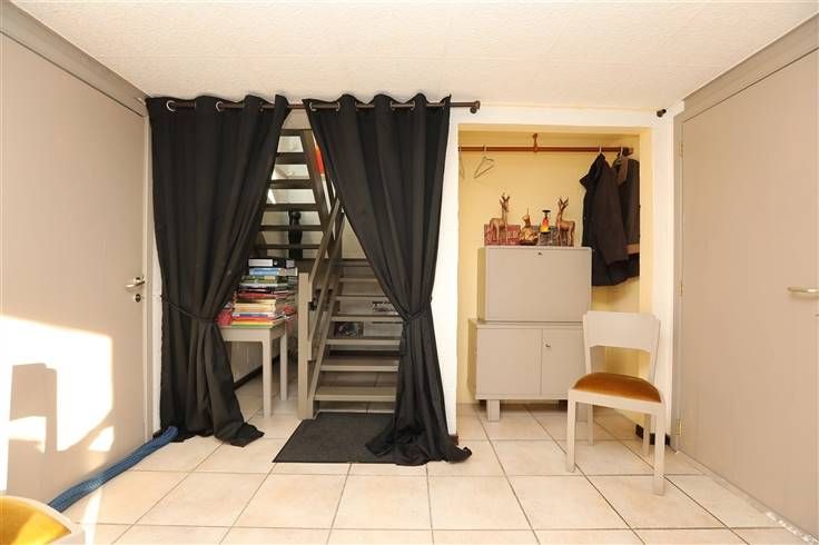 De verdieping, op tuinniveau, heeft een lichte open ruimte 57 m² met salon-living/eetkamer en ingerichte keuken, overdekt terras 4 m², wasplaats/berging 8,50 m² met toegang tot de tuin, garderobe 2,50 m² en wc.