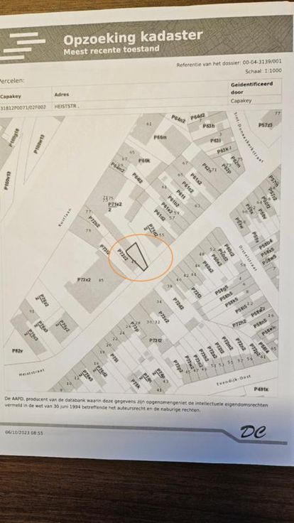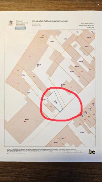Dit pand wordt op internet verkocht van 10/04/2025 tot 18/04/2025. Een perceel bouwgrond, te Brugge, Heiststraat (gelegen tussen huisnummer “43 en 55”) gekadastreerd 12e afdeling, sectie P, nummer 71/02/F/2 P0000, groot 138m². KI = € 1 vrij van gebruik mits betaling van de koopsom en kosten Gunstig bodemattest de dato 13/2/2024 Stedenbouwkundige inlichtingen: PRUP Solitaire vakantiewoningen Brugge-Oostende, RUP Vissershaven bestemming “artikel 1 -zone voor wonen Zuid”, niet opgenomen in de inventaris van het bouwkundig erfgoed, geen dagvaardingen gekend, geen voorkooprecht, geen verkavelingsvergunning, niet gelegen in mogelijk of effectief overstromingsgevoelig gebied zoals vastgesteld door de Vlaamse regering; niet gelegen is in een afgeba ngsgebied of afgebakende oeverzone zoals vastgesteld door de Vlaamse regering; niet gelegen is in een risicozone voor overstromingen, P-score D, G score onbekend, P score: D