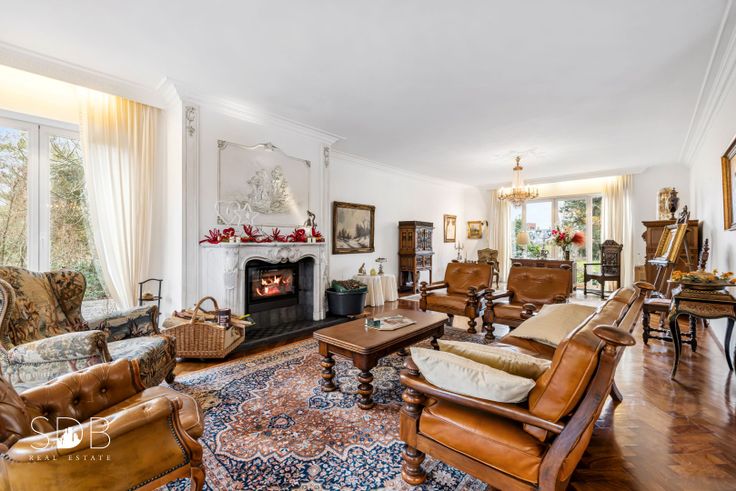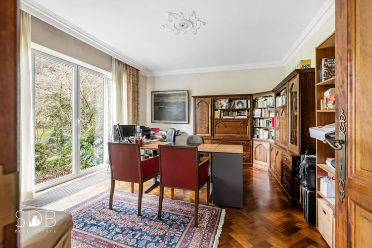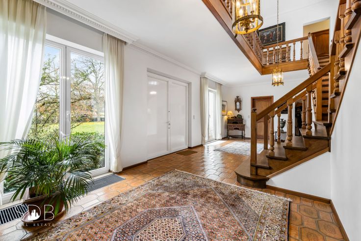 Gelijkvloers : Inkomhal, imposante dubbele trap, bureau, woonkamer, eetkamer, Keuken incl. extra eetruimte, bergruimte, toilet