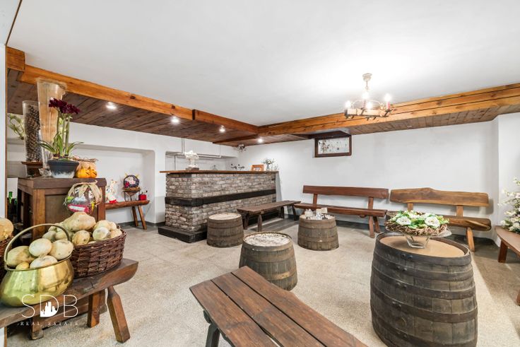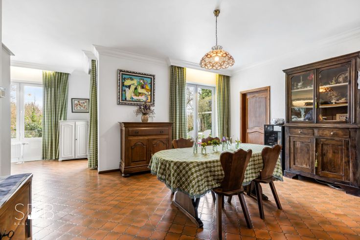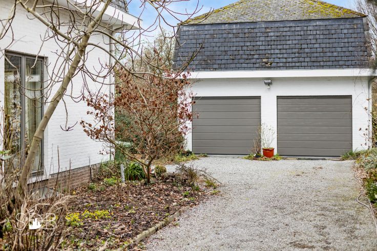- Afzonderlijke dubbele garage, omheinde wintertuin, dakterras, terras gelijkvloers, vijver