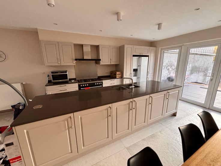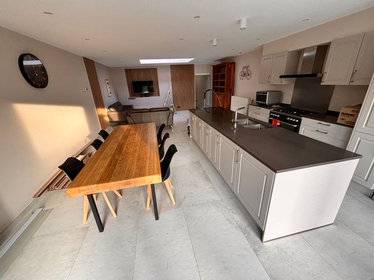 1 cuisine avec grand ilot central, totalement équipée (frigo américain, lave vaisselle, cuisiniere 5 taques au gaz, hôtte, vaisselle) avec grande table en chêne massif.