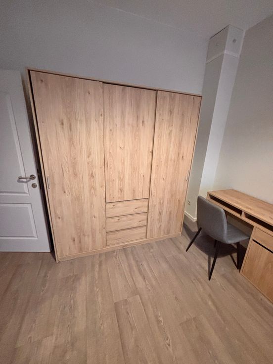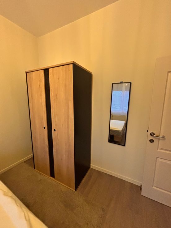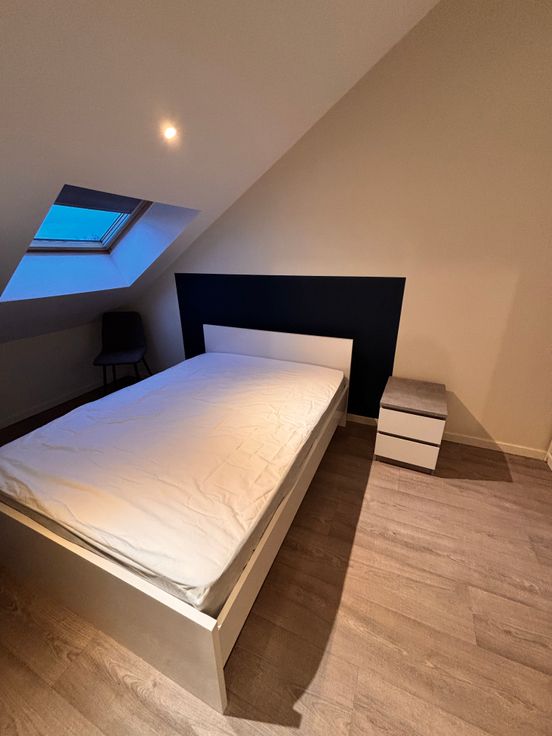 Toutes les chambres sont meublées avec un lit et matelas de 140 cm, une garde-robe, une table de nuit, un bureau avec chaise.