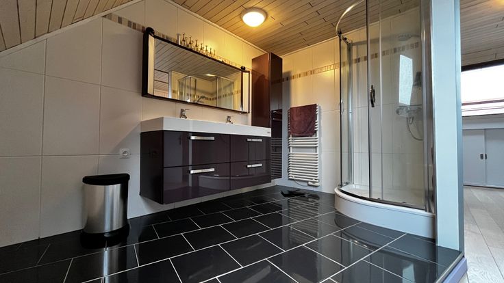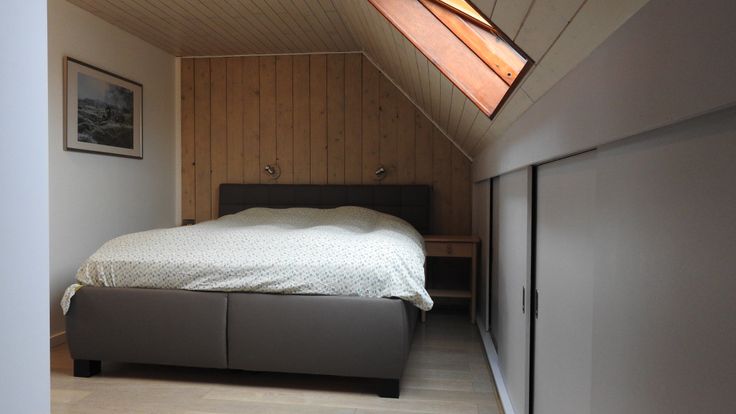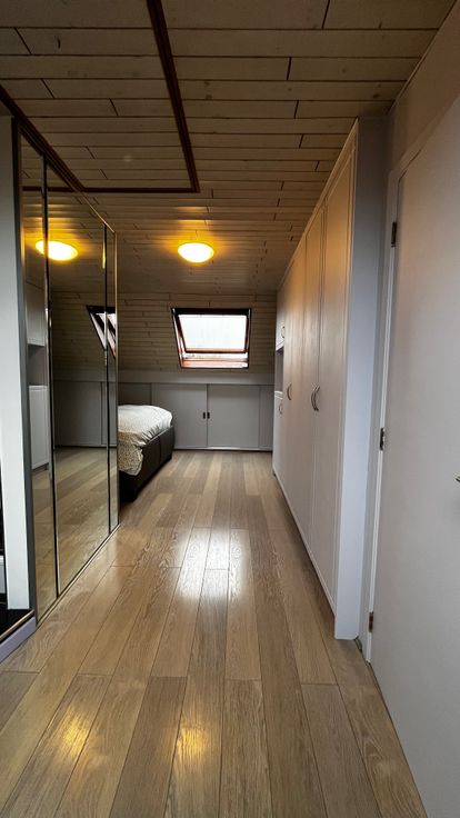 Derde: ingerichte badkamer, nwe douche, meubel dubbele lavabo, slpk, ingemaakte kasten, bergruimte, 2 VELUX met afstandsbediende screens