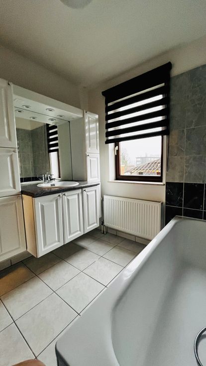 Deze moderne beletage van 1999 is goed gelegen in de Brusselse stadsrand, vlakbij winkelcentrum en op enkele minuten van de Brusselse ring. Openbaar vervoer is ook eenvoudig bereikbaar. De dubbele oprit, de ruime garage en de parkeerplaats voor de woning biden plaats voor 4 wagens.