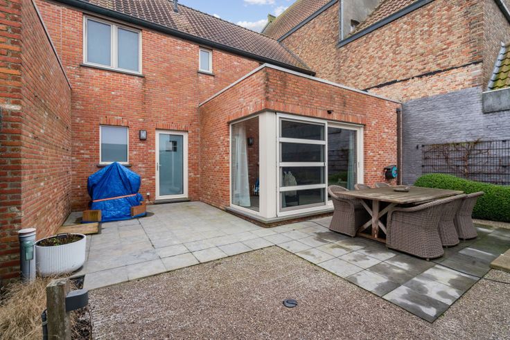 Deze instapklare energiezuinige woning (2013) met garage, terras en tuin ligt in de dorpskern van Esen, een deelgemeente van Diksmuide. Het perceel heeft een oppervlakte van 182 m² en een bewoonbare oppervlakte van 201 m². De indeling van de woning is als volgt, op het gelijkvloers: inkom met gastentoilet, via de stalen deur betreedt u de lichtrijke living met toegang tot het terras via het schuifraam. De volledig ingerichte keuken is voorzien van kwalitatieve toestellen en bevindt zich aan de voorzijde van de woonst. Als laatste hebben we nog een ruime garage waar men de aansluiting voor was- en droogmachine en de nutsvoorzieningen kan terug vinden. Deze moderne woning heeft op het verdiep 3 slaapkamers (10, 11 en 15m²), apart toilet, en aansluitend is er een badkamer met ligbad, douche en dubbele lavabo in meubel. Verder is er nog een zolderverdieping aanwezig die zeer nuttig is als stockageruimte. Achter de woning is een ruim terras en tuin met westelijke oriëntatie. Het tuinhuis is de ideale opbergruimte voor klein materiaal en terrasmeubelen. Er is de mogelijkheid om de auto voor de woning te parkeren alsook is er een parkeerplaats in de zijstraat voorzien. Het openbaar vervoer, dorpsschool en -winkels liggen op wandafstand. Het centrum van Diksmuide ligt op fietsafstand of 5 minuten met de auto. Deze tot in het detail afgewerkte woonst is een streling voor het oog! Kortom een ideale thuis voor een koppel of klein gezin, maar ook uitermate gesc... Renovatieplicht: nee