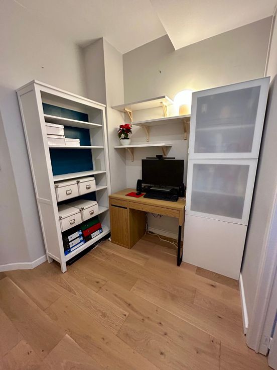 • Spacieux: Ancien 2 chambres, transformé en 1 chambre + bureau/baby room
