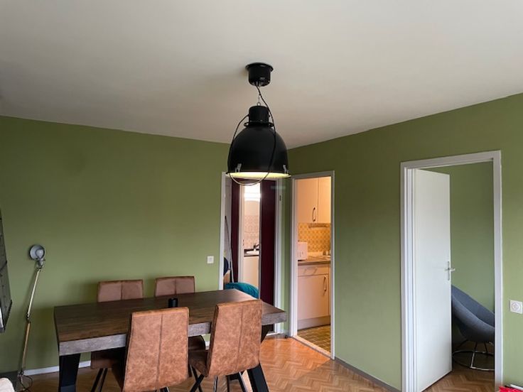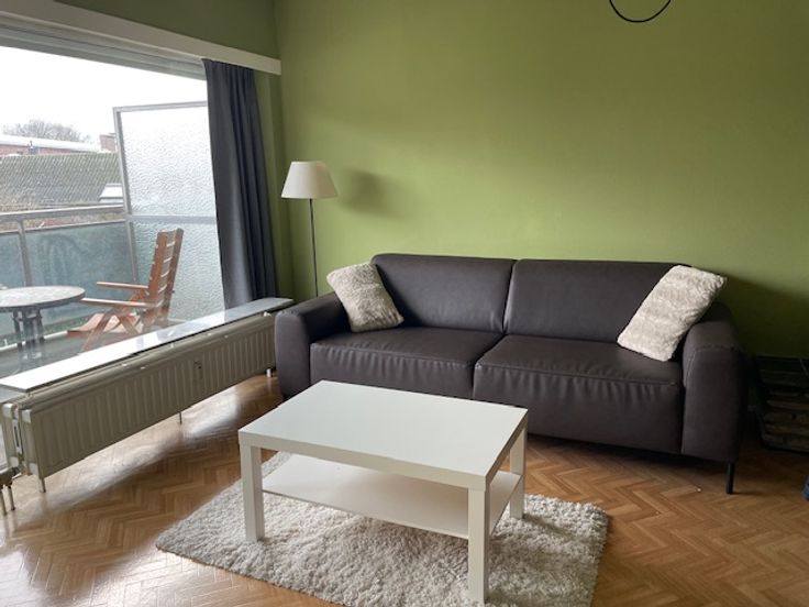 Zeer rustig gelegen en aangenaam terras met uitzicht op parking/tuin (geen straatlawaai). Meubels zijn 2 jaar oud en kunnen worden overgenomen prijs overeen te komen (bed, zetel, tafel en stoelen, verlichting., koelkast met vriesvak) Volledig geschilderd en opgefrist. Zeer lage verbruikkosten. Te bekijken op afspraak enkel op zaterdag. Geen immokantoren aub.