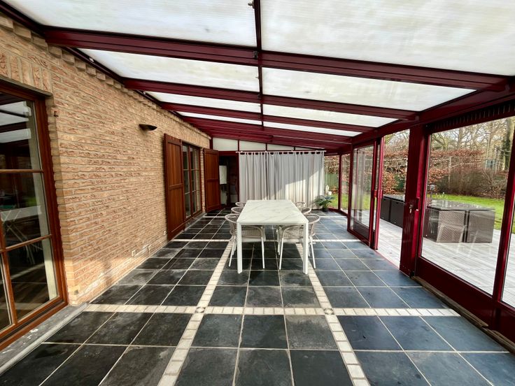 Dit ruime, alleenstaande huis in een doodlopende straat biedt luxe en comfort. Het beschikt over een vernieuwde keuken met hoogwaardige apparatuur, een lichte woonkamer en drie slaapkamers. Vanuit de veranda en vanop het terras kijkt u uit op het bos. Daarnaast zijn er een garage, carport, zolder en verschillende bergruimtes voor extra gemak. De ruime tuin met zijn struiken en bloemen bied extra privacy.