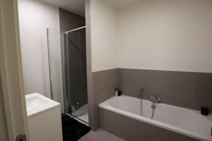 De hal geeft toegang tot een aparte wc en een badkamer met ligbad en aparte douche. De keuken heeft een praktisch keukeneiland en biedt voldoende opbergruimte. Aansluitend bevindt zich een lichtrijke leefruimte. Via een groot schuifraam (zuidgericht) komt u op het terras van 25 m².