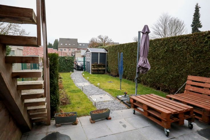 De buitenruimte is een echte troef: een volledig aangelegde en zuidgerichte tuin van 60 m² met tuinhuisje, een terras en een buitenparkeerplaats achter de woning. Het appartement wordt verkocht met een bijhorende garage van 25m². Deze bevindt zich achter de buitenparkeerplaats. Dit betekent dat u 30 000€ moet bijtellen bij de prijs van het appartement.