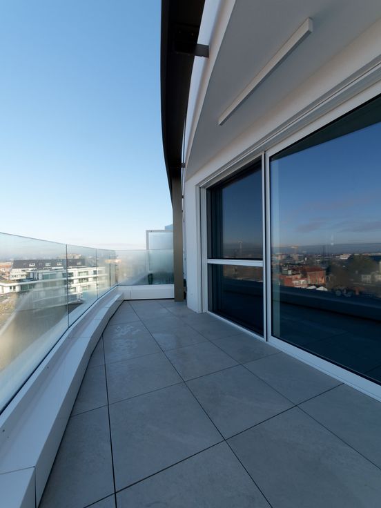Nieuwbouw luxe BEN-appartement (92.5m² waarvan 11.75 m² terras, groendak niet inbegrepen): €950/maand.