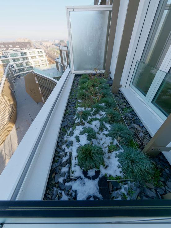 - Een groene omgeving met eigen groendakje (naast terras) en nieuw aangeplante bomen;