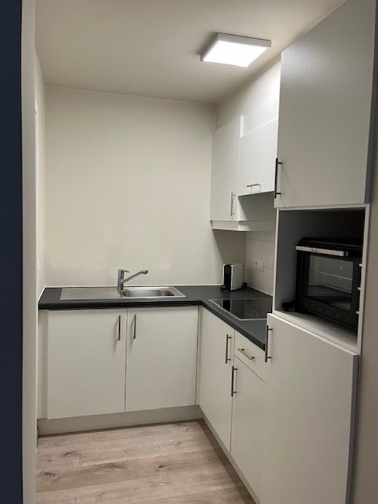 - keuken is voorzien van een keramische kookplaat en onderbouwkoelkast met diepvriesvak en ruime aparte berging