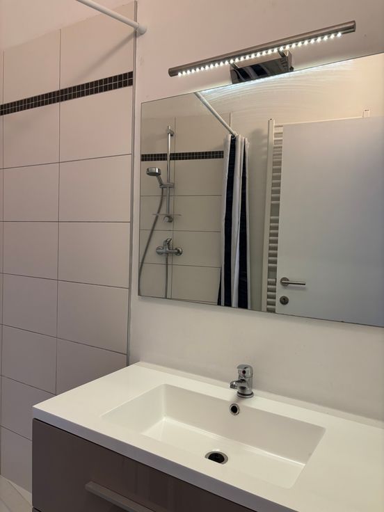 Salle de bain, wc, hall, salon-salle à manger-cuisine, buanderie