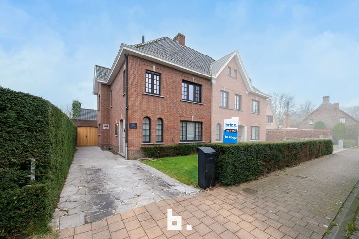 Deze uiterst charmante woning werd gebouwd in de jaren '50 en het authentieke karakter werd behouden. Via een vernieuwde kwalitatieve houten voordeur kom je in de inkom-/traphal, aansluitend is er de met licht overgoten leefruimte opgedeeld in een eetplaats en gezellige zithoek met open haard. Vervolgens komen we in de keuken met grote kelderruimte. Praktisch is de grote garage met bijkeuken, veranda en wasplaats die hierop aansluiten. Op de eerste verdieping vinden we drie ruime slaapkamers en een badkamer (douche, dubbel wastafelmeubel, toilet). De nog te isoleren zolderruimte biedt tal van mogelijkheden indien je nog extra slaapkamers wenst te creëren. De leefruimtes bevinden zich allemaal richting de zuidelijk georiënteerde riante tuin met aangenaam terras. Voor de woning is er een oprit, parkeerplaats en voortuin. In de rustige straat is er voldoende parkeergelegenheid.