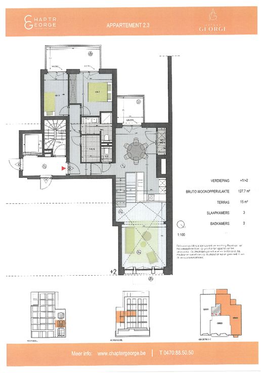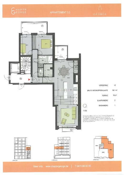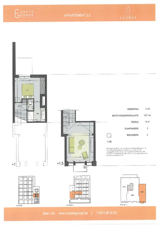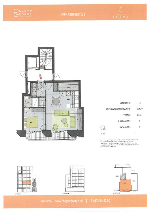 Avenue George vormt een unieke mix van een originele nieuwe gevel met een opvallende groene gevelsteen en het behoud van een waardevolle gevel in rode baksteen waar 3 unieke nieuwe appartementen achter schuilgaan.