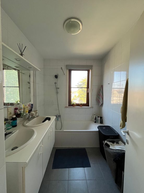 Bij het appartement hoort ook een ruime ondergrondse parkeerstaanplaats (verplicht bij te huren aan €50/maand bovenop de huurprijs).