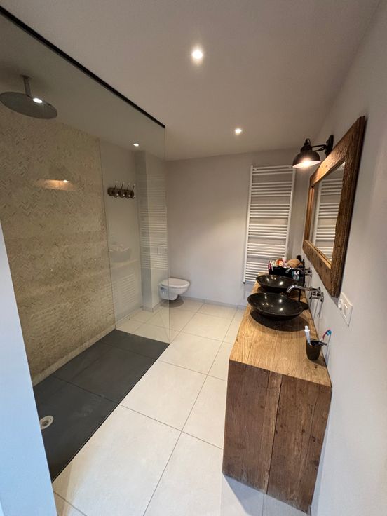 De indeling is als volgt: inkom met traphal, apart toilet, gezellige leefruimte met eetplaats, geïnstalleerde open keuken met tweede eetplaats, bureauruimte, kelder en aparte garage met zolderruimte. Op het eerste verdiep bevinden zich de overloop, 3 slaapkamers, 2 badkamers en een inloopdressing. Er is ook nog een zolder met trapluik.
