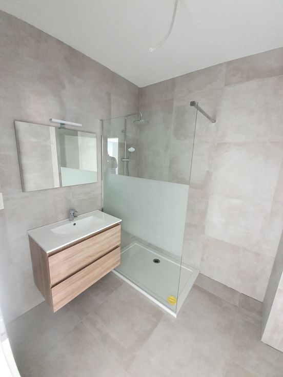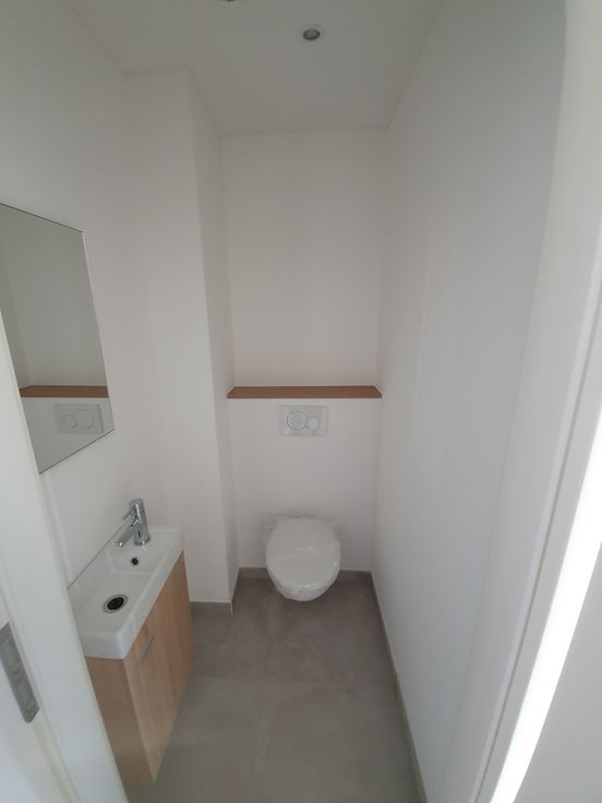 Superbe appartement construit en 2021 situé au rez de chaussée d un immeuble de 8 unités. Composé d'un séjour avec cuisine équipée d'une chambre parentale et d'une chambre enfant et d'une salle de bain avec douche et WC séparé d'une bunderie d'une petite pièce de rangement. Tous les chassis sont équipés de volets électrique. Chauffage au gaz possibilité de louer un garage.