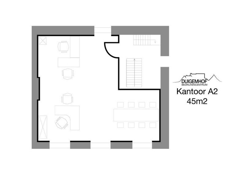 Vindt uw droomkantoor in Duigemhof Bedrijvencentrum. U krijgt; eigen, moderne, gemeubelde kantoorruimte van 45m² met 37m² gemeenschappelijke ruimten in unieke historische vierkantshoeve tussen de velden op een boogscheut van Herent centrum.