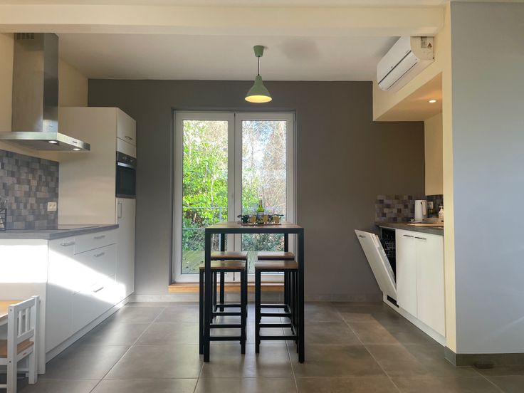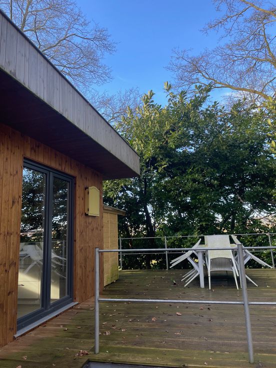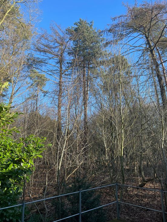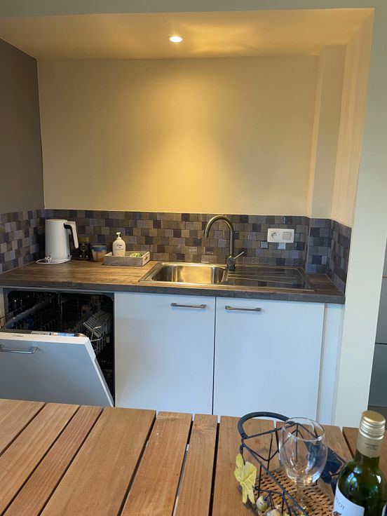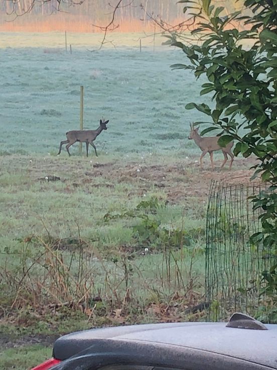 Via de keuken kan men naar het terras alwaar men zich direct in de natuur begeeft omringd door diverse fauna en flora. De woning bevindt zich tevens vlak naast een oversteekplaats voor het wild waardoor men op dagelijkse basis reeën, fazanten, hazen, buizerds en nog veel meer kan bewonderen.
