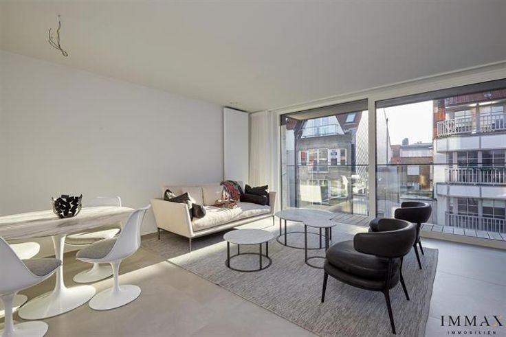 Dit gemeubeld appartement is gelegen in de Kustlaan, vlak bij het Driehoeksplein en op slechts enkele stappen van het strand. Het gebouw straalt een moderne, strakke architectuur uit en biedt een hoogwaardig afgewerkte woonervaring. Dit appartement omvat: inkomhal, zuidgerichte leefruimte met zonneterras, volledig ingerichte open keuken, toilet en berging, 2 volwaardige slaapkamers, 2 douchekamers, beide uitgevend op een terras achteraan. Er is een gemeenschappelijke fietsenberging en privatieve kelderbergingen in de residentie. Huurprijs: €1.650/maand Maandelijkse kost: €100/maand Exclusief: 2de verblijfstaks, water, gas en elektriciteit. Contacteer ons voor een bezoek of voor meer informatie via: tel. : 050 62 44 14 of via knokke@immax.be