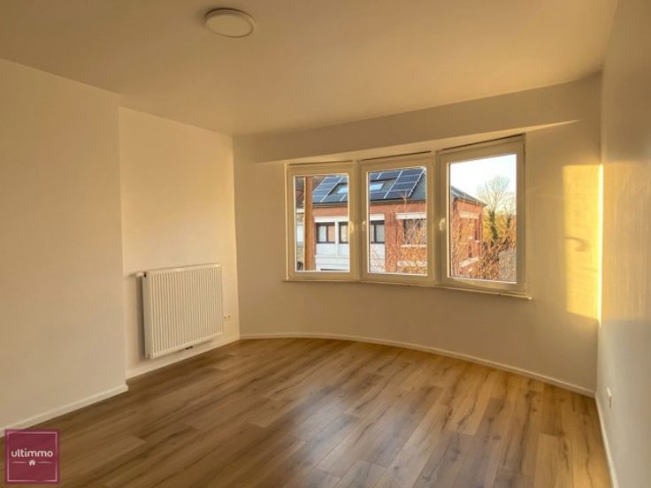 Ultimmo vous présente un appartement 2 chambres à louer à Virton. Il se situe au premier étage d'un immeuble rénové. Le logement se compose d'un hall d'entrée, d'une cuisine équipée (hotte, vitrocéramique, frigo combiné avec un freezer, lave-vaisselle), d'un séjour, d'une salle de douches (WC suspendu, lavabo, douche et son mobilier), de 2 chambres . L'appartement est loué avec une cave privative (alimentation eau, évacuation d'eau et électricité).