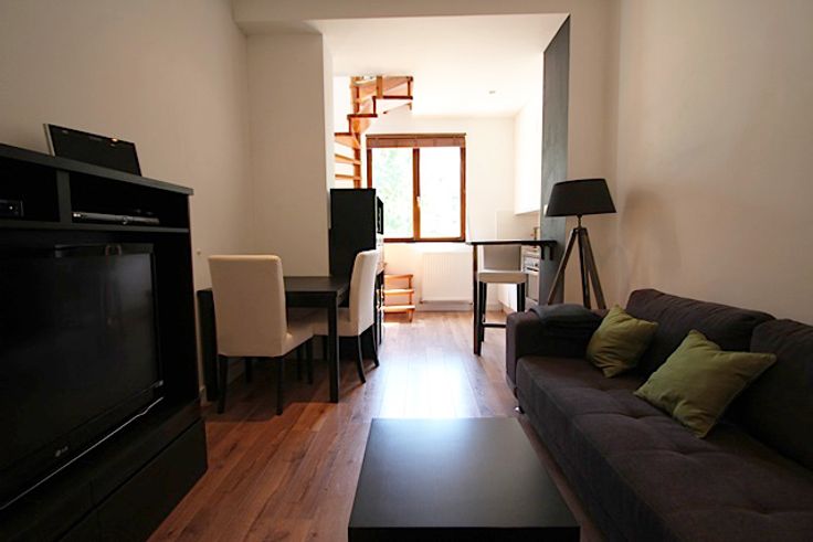 Petit duplex entièrement meublé, quartier Cavell, à mi-chemin entre l’av. Winston Churchill et la place Brugmann. A proximité de nombreux commerces et transports en commun. Appartement cosy et moderne d’environ 47 m2 (selon PEB), bien aménagé dans maison de maître (entresol). Une chambre avec grand dressing, espace sdd, wc séparé, cuisine équipée (frigo, lave-vaisselle, taques vitro-céramique, four, micro-ondes), parquet, … Entièrement meublé et équipé (TV salon et chambre). Pas de lave linge.
